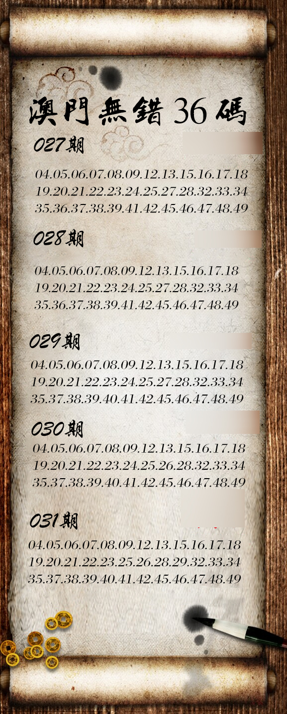 031期⑥码【04 28 26 38 21 33】开:??准 031期③码【04 28 26】开:??准 031期①肖【04虎】开:??准 031期②肖【虎龙】开:??准 031期③肖【虎龙鸡】开:??准 031期④肖【虎龙鸡牛】开:??准 031期⑤肖【虎龙鸡牛马】开:??准 031期⑥肖【虎龙鸡牛马鼠】开:??准 031期⑨肖【虎龙鸡牛马鼠蛇猴猪】开:??准 请牢记澳门九霄网969737.COM惊喜不断